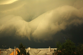Idag på kvällen kring 21.30 kom jag från duschen och kollade att det är lite mörkt och att det kanske kommer regn snart. Sen satt jag mig ner och försökte klura ut Hbls korsord, då Carl säger att de är nog ganska mörkt. Med kameran i högsta hugg försökte jag nappa några bilder förrän det hällde ner. På en minut drog det mörka in från havet. Bilderna kan inte alls beskriva känslan, men här är några.